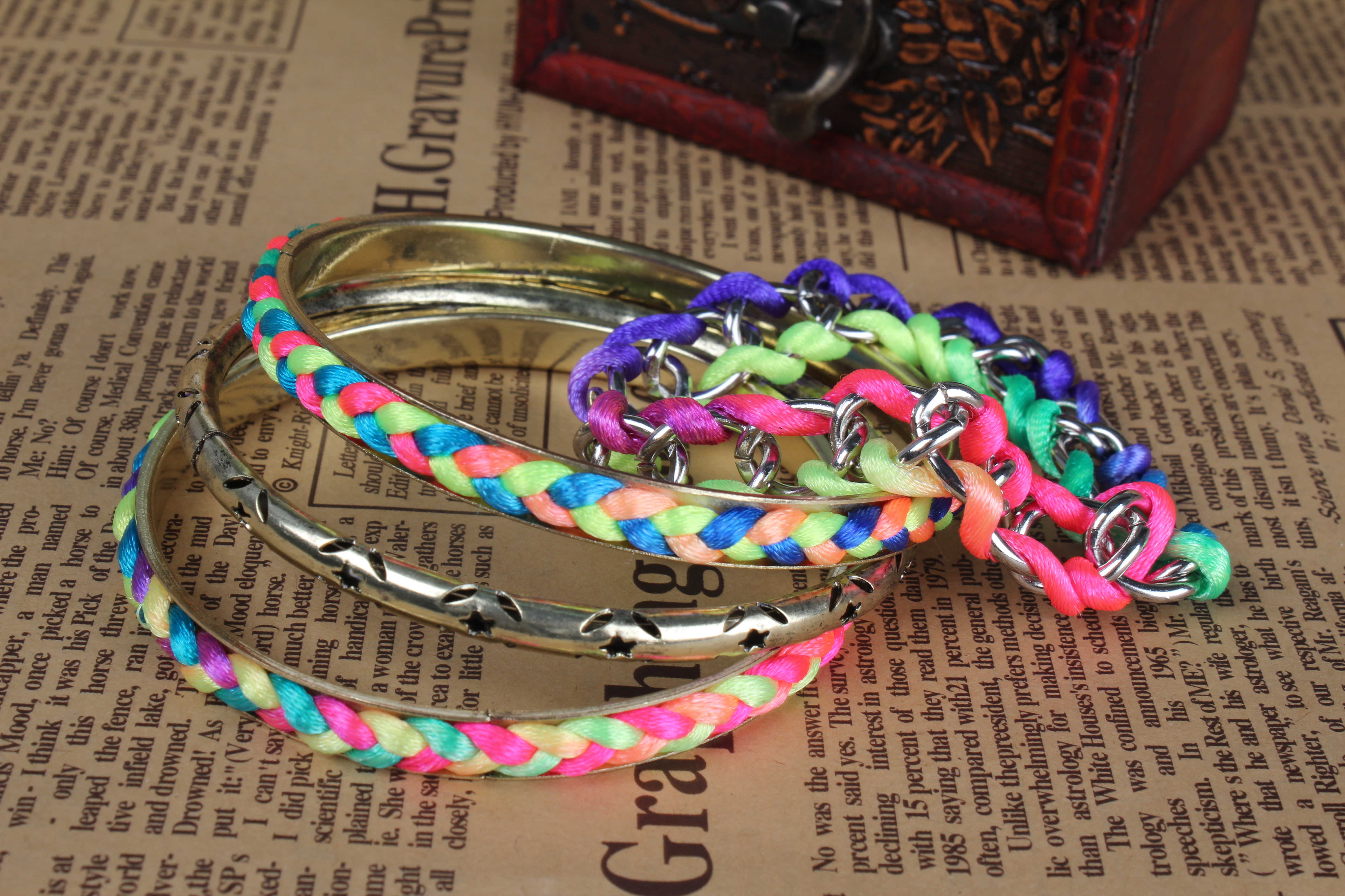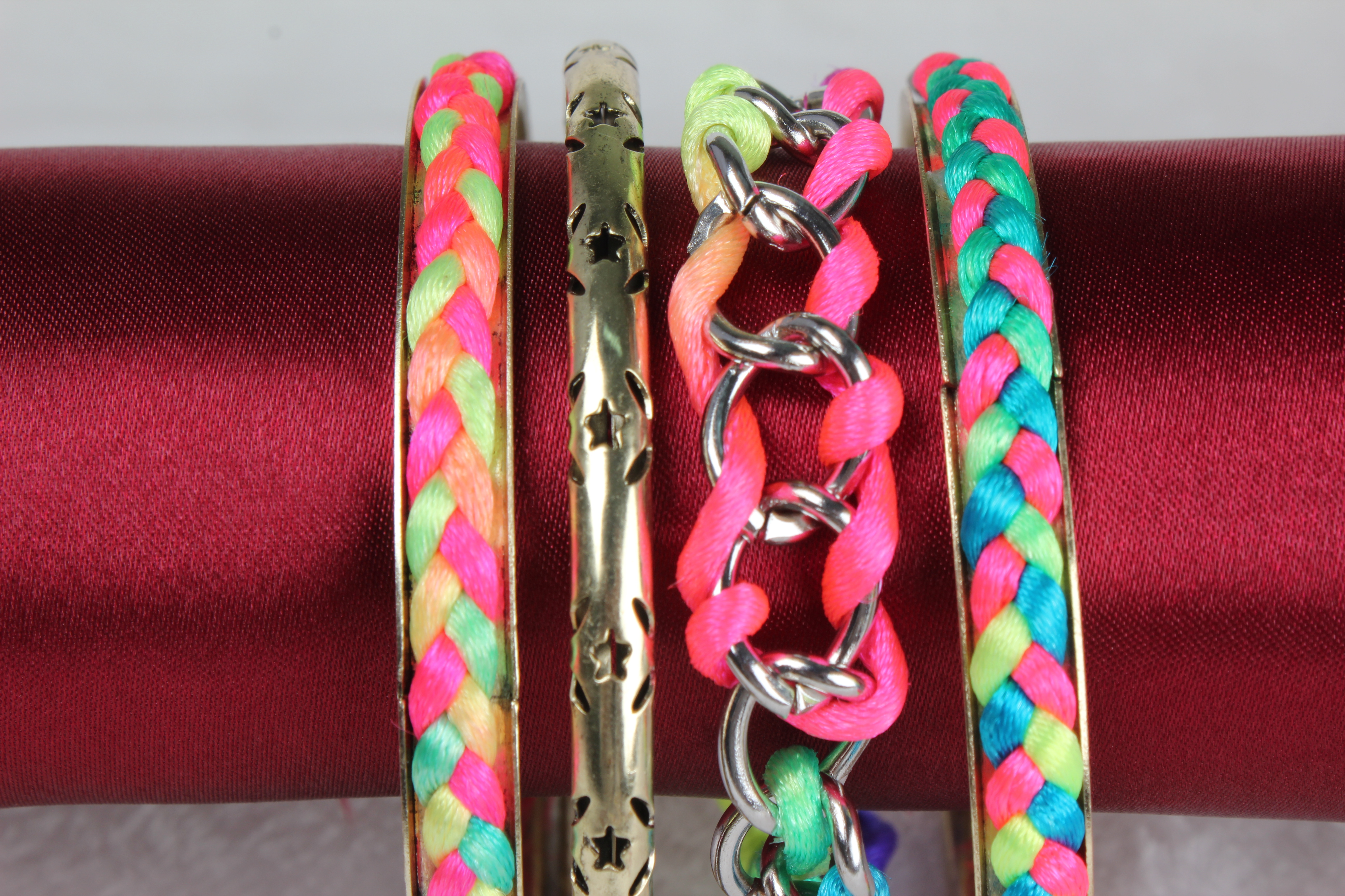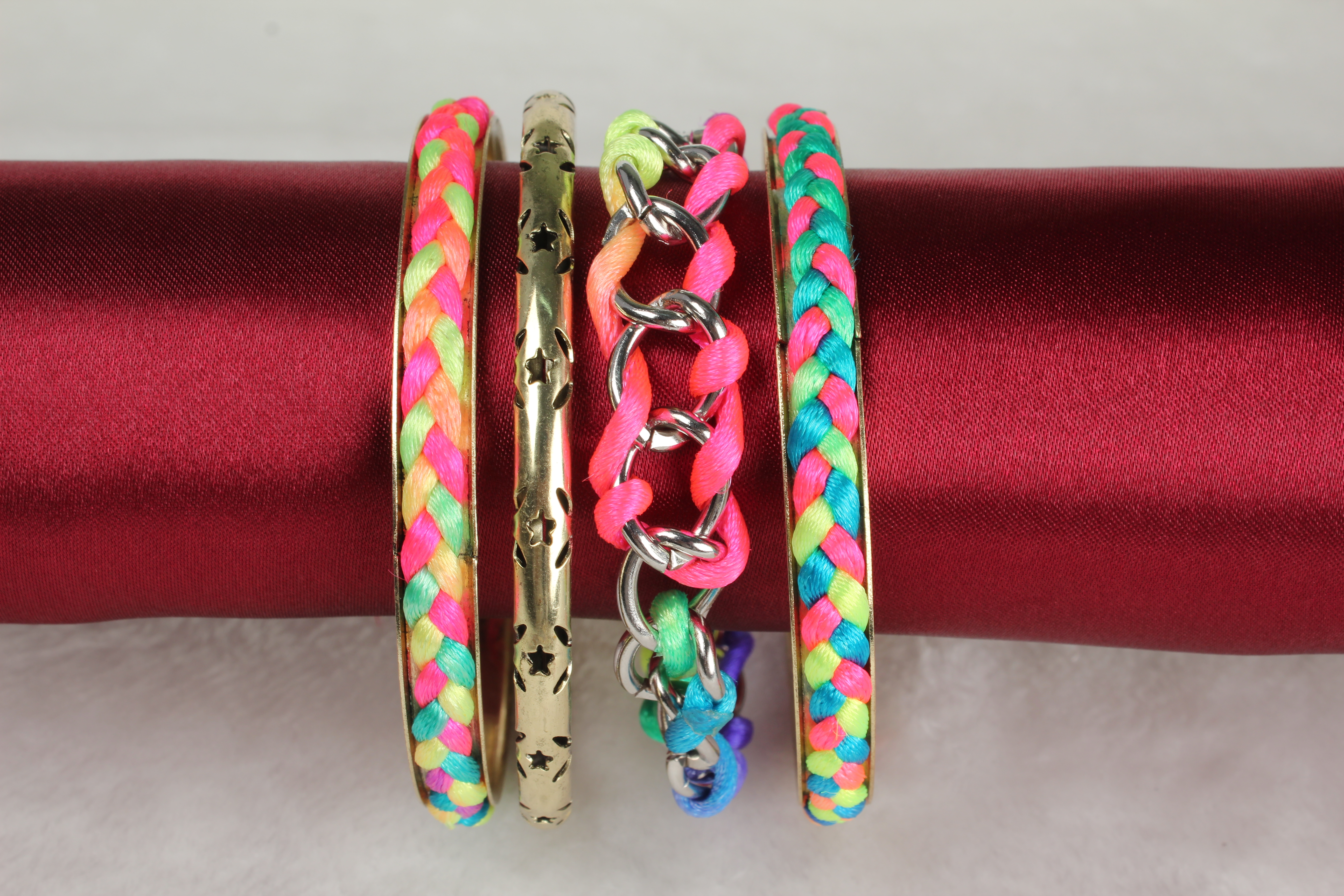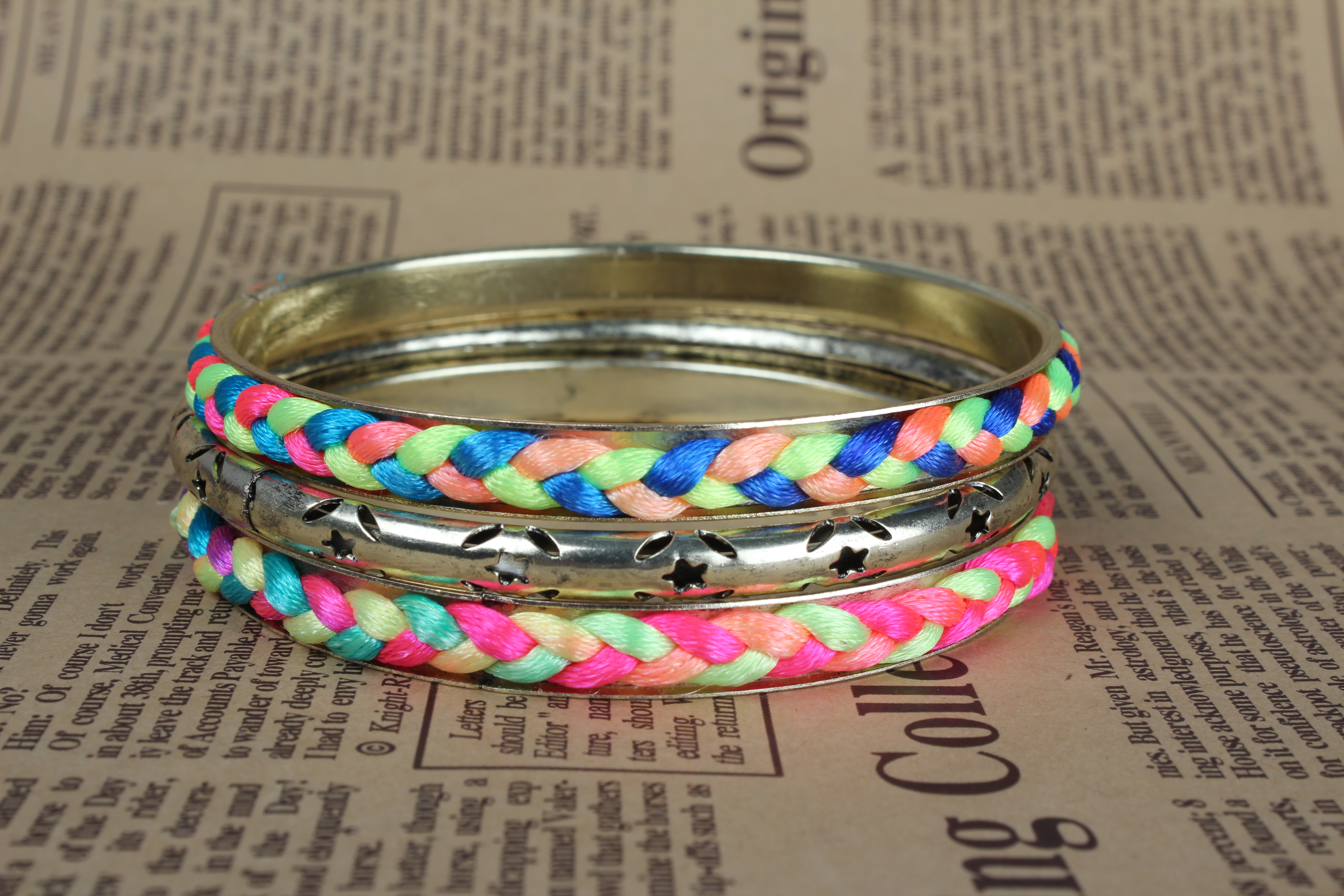 1 x 4 Piece Colorful Woven Burnished Gold Bracelet Set