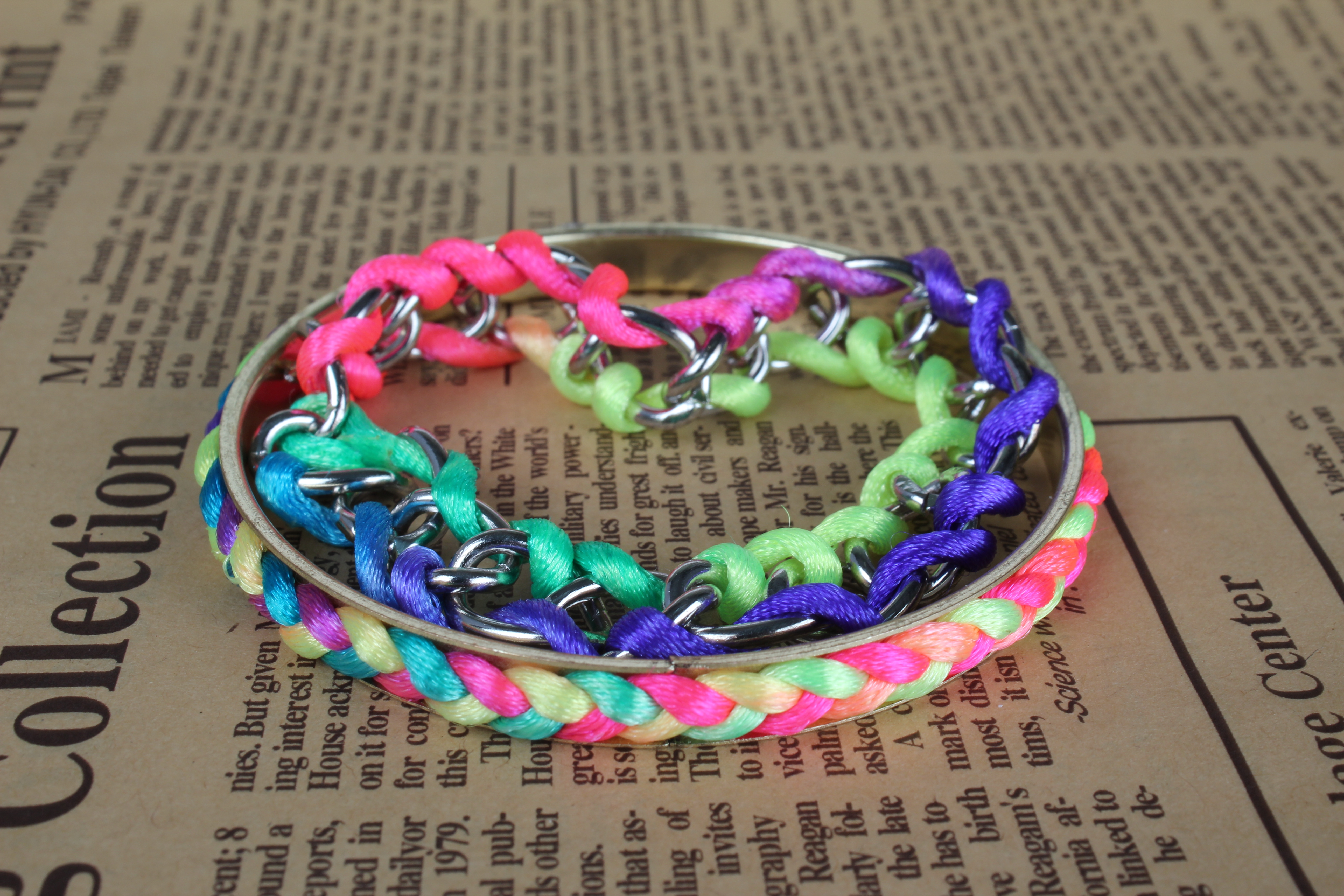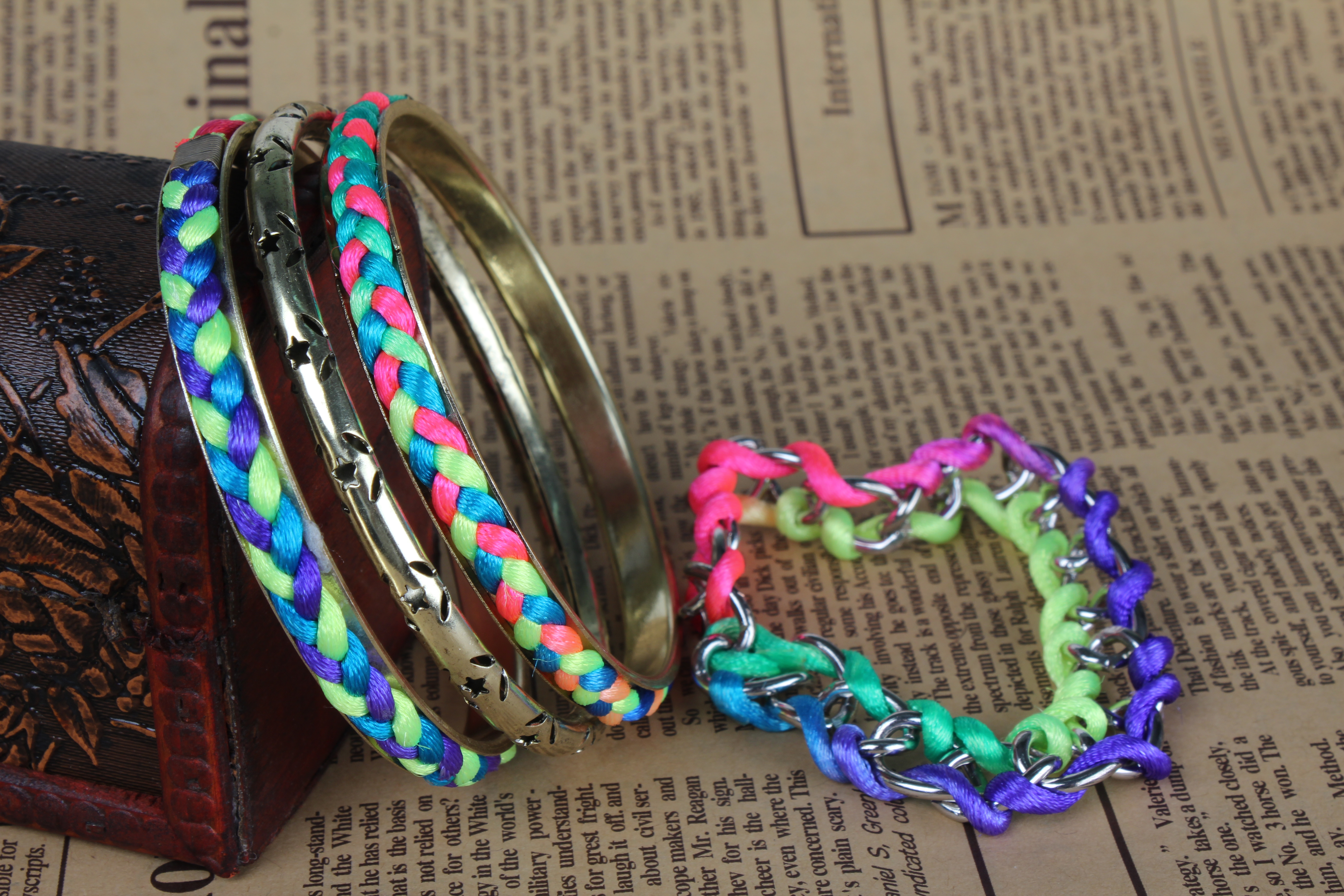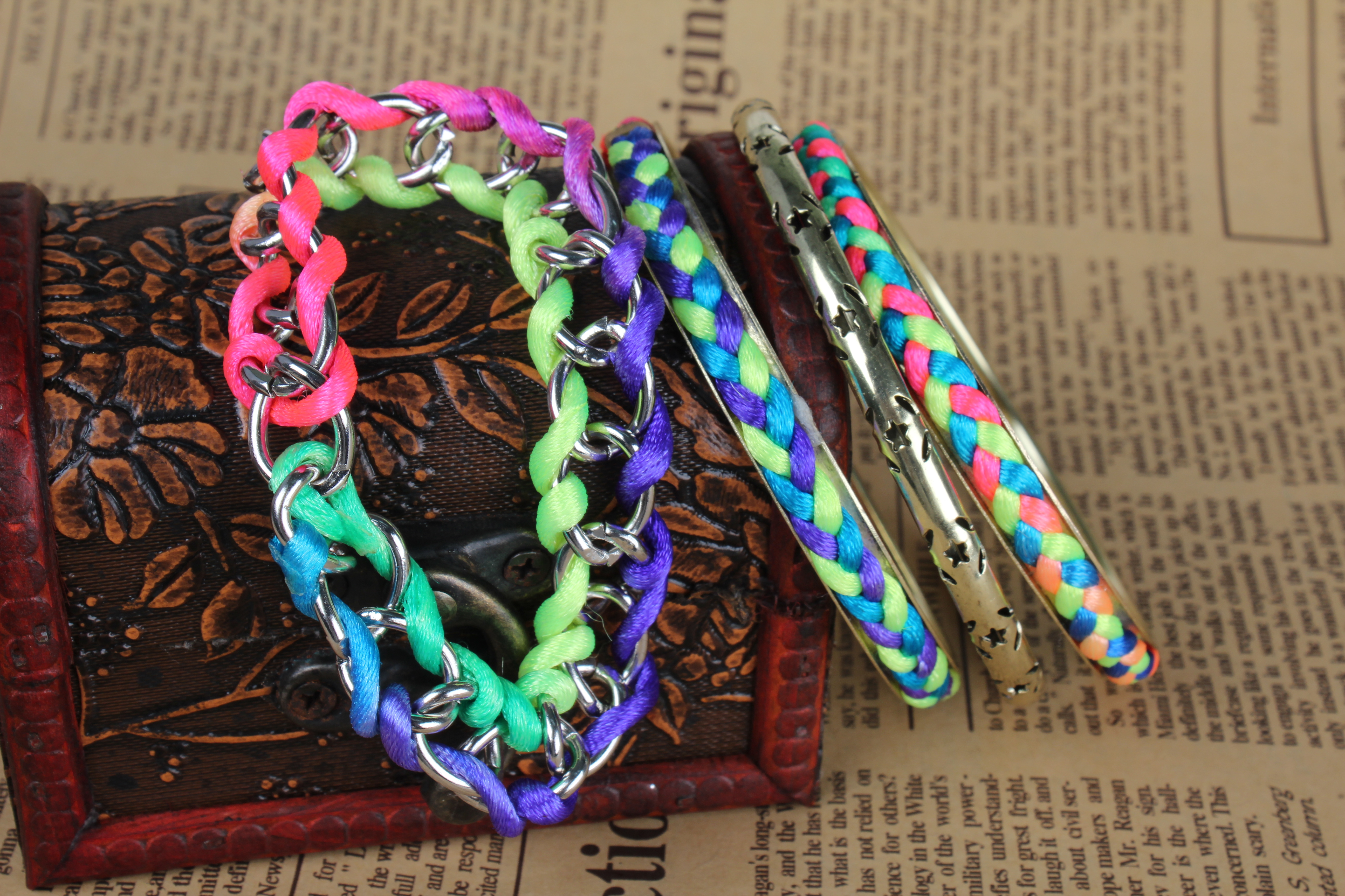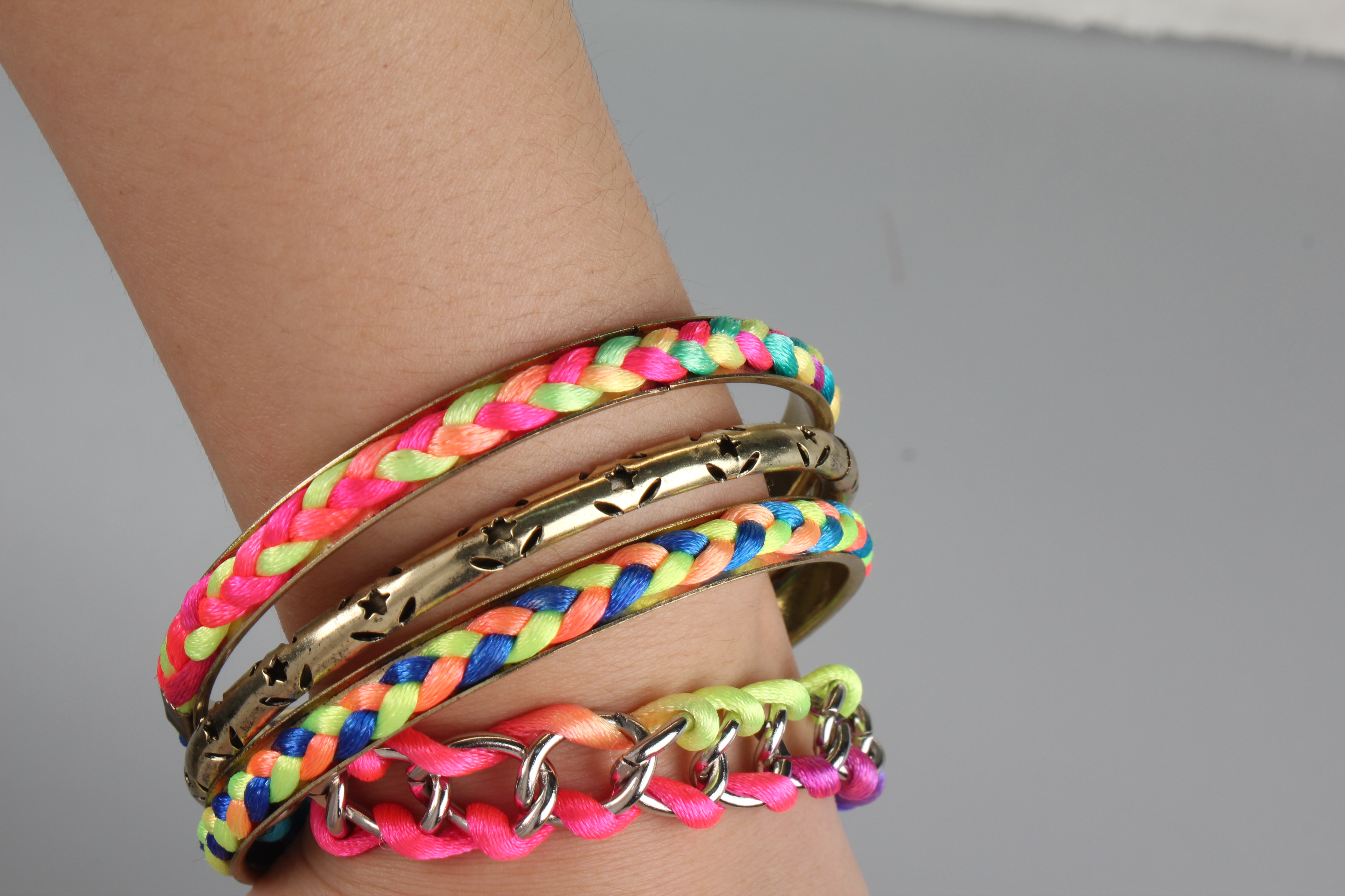 1 x 4 Piece Colorful Woven Burnished Gold Bracelet Set