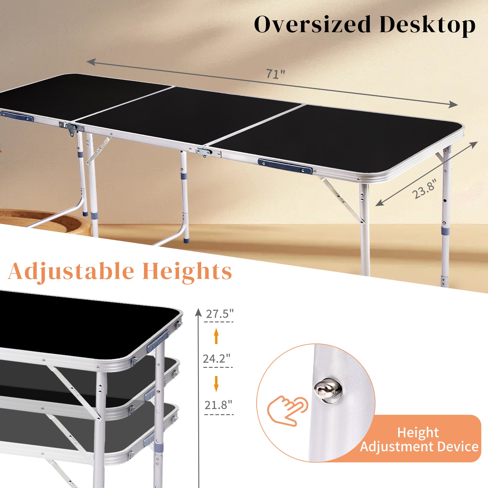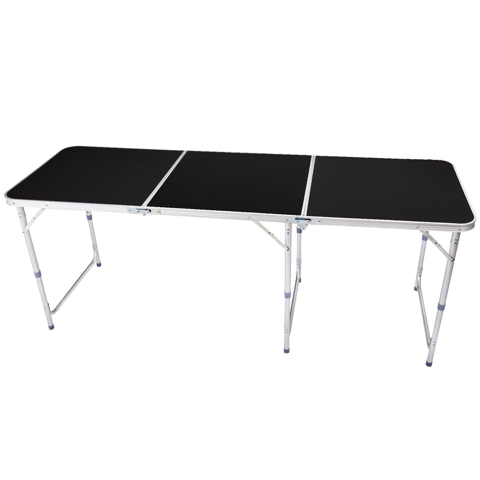 6ft Black Outdoor Folding Table Aluminum Alloy Rectangular 50kg Tri-fold Tabletop